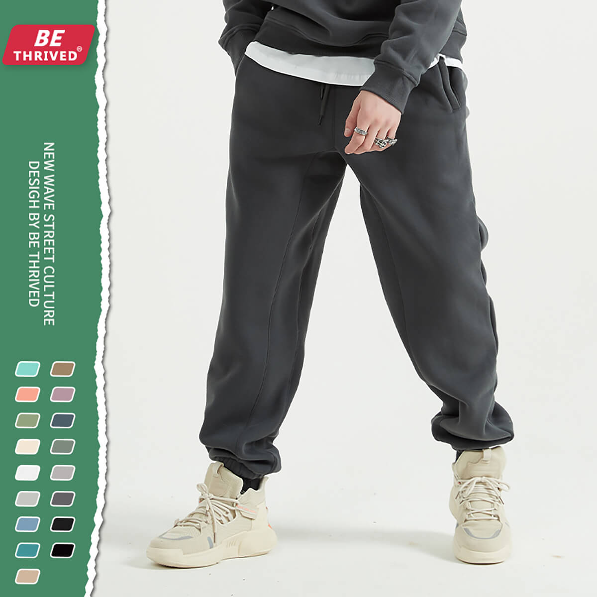 10.1ozの純綿無地のゆったりしたパンツ、スタイリッシュなデザイン。